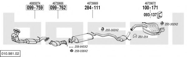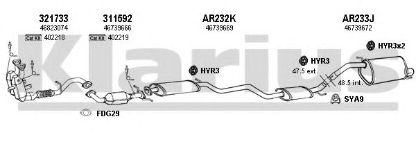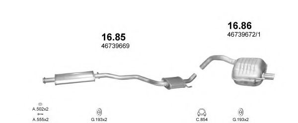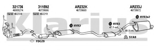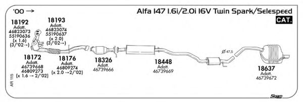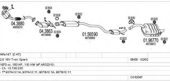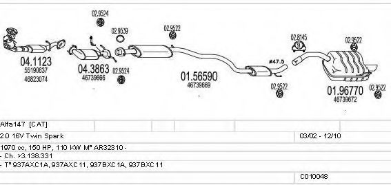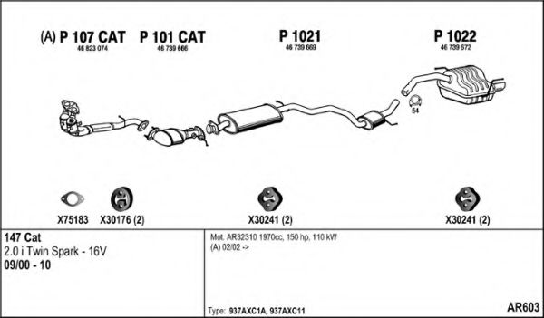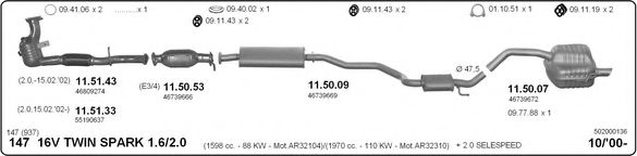 Список запчастей для ALFA ROMEO 147 (937) 2.0 16V T.SPARK (937AXC1_) Система выпуска Глушитель в сборе