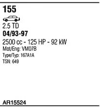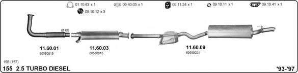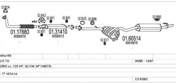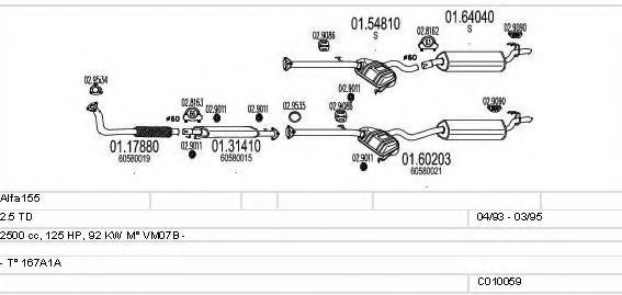 Список запчастей для ALFA ROMEO 155 (167) 2.5 TD (167.A1A) Система выпуска Глушитель в сборе