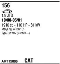 Список запчастей для ALFA ROMEO 156 (932) 1.9 JTD (932A2B__) Мотоцикл Глушитель в сборе