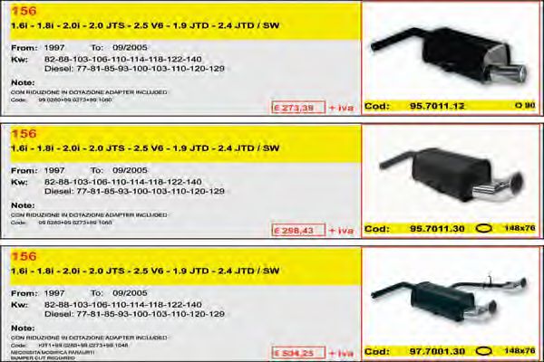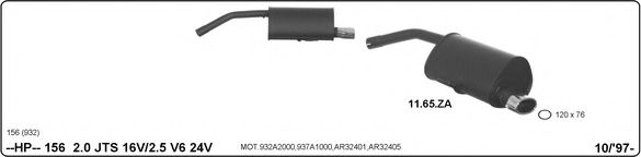 Список запчастей для ALFA ROMEO 156 (932) 2.0 JTS (932AXA) Система выпуска Глушитель для спортивного автомобиля