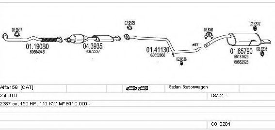 Список запчастей для ALFA ROMEO 156 Sportwagon (932) 2.4 JTD (932BXC) Система выпуска Глушитель в сборе