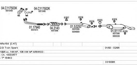 Список запчастей для ALFA ROMEO 164 (164) 2.0 T.S. (164.H3) Мотоцикл Глушитель в сборе