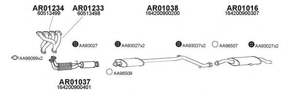 Список запчастей для ALFA ROMEO 164 (164) 2.0 Twin Spark Система выпуска Глушитель в сборе