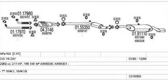 Список запчастей для ALFA ROMEO 164 (164) 3.0 Система выпуска Глушитель в сборе