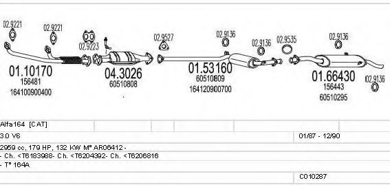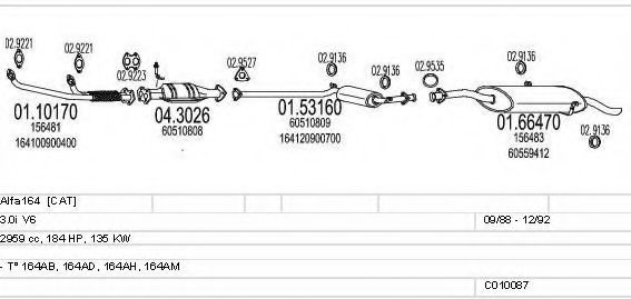 Список запчастей для ALFA ROMEO 164 (164) 3.0 V6 (164.AD, 164.AH, 164.AB) Мотоцикл Глушитель в сборе
