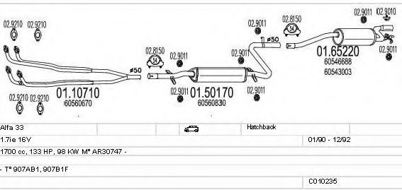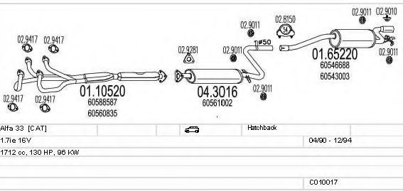 Список запчастей для ALFA ROMEO 33 (907A) 1.7 16V (907.A1C) Система выпуска Глушитель в сборе