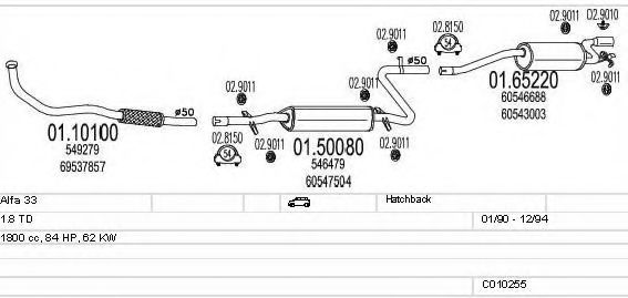 Список запчастей для ALFA ROMEO 33 (907A) 1.8 TD (907A5) Система выпуска Глушитель в сборе