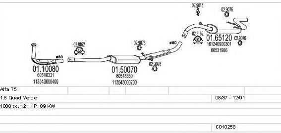 Список запчастей для ALFA ROMEO 75 (162B) 1.8 (162.B1L, 162.B1F) Мотоцикл Глушитель в сборе