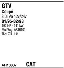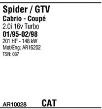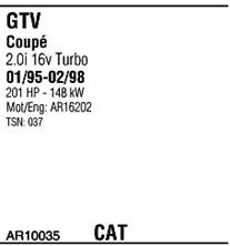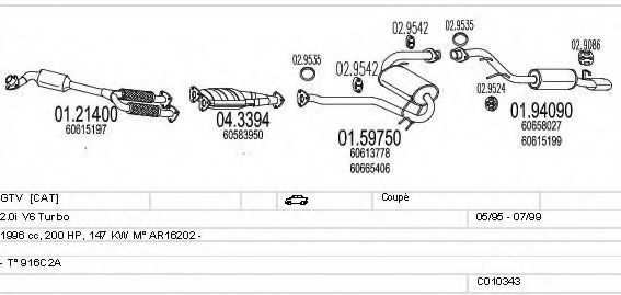 Список запчастей для ALFA ROMEO GTV (916C_) 2.0 V6 Turbo (916.C2A) Система выпуска Глушитель в сборе
