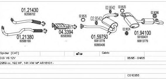 Список запчастей для ALFA ROMEO SPIDER (916_, 916S_) 3.0 V6 (916S1) Система выпуска Глушитель в сборе