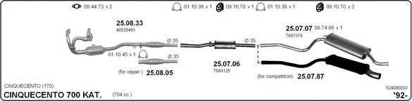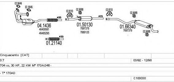 Список запчастей для FIAT CINQUECENTO (170) 0.7 i (170AD) Система выпуска Глушитель в сборе