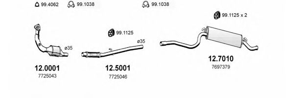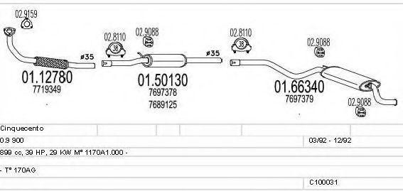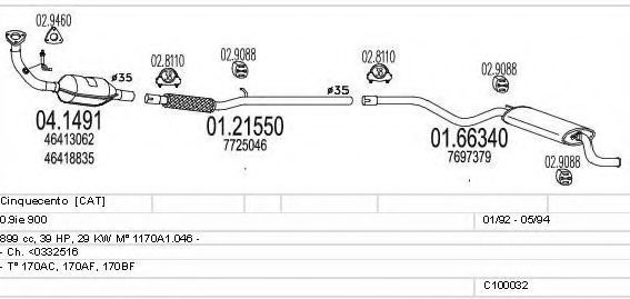 Список запчастей для FIAT CINQUECENTO (170) 0.9 i.e. (170AC) Система выпуска Глушитель в сборе