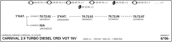 Список запчастей для KIA CARNIVAL / GRAND CARNIVAL III (VQ) 2.9 CRDi Система выпуска Глушитель в сборе