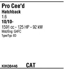 Список запчастей для KIA PRO CEE'D (ED) 1.6 CVVT Мотоцикл Глушитель в сборе