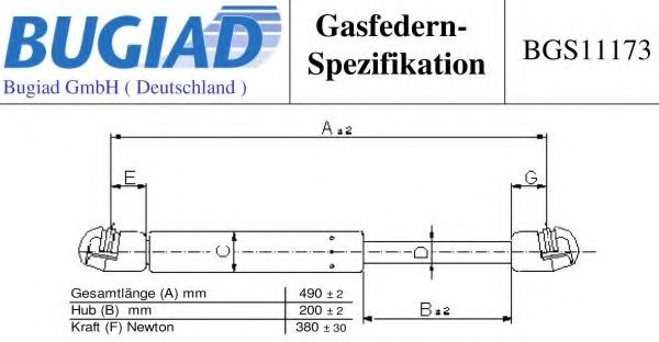 Высота подъема [мм] : 200 Выталкивающая сила [N] : 380 Общая длина [мм] : 490
