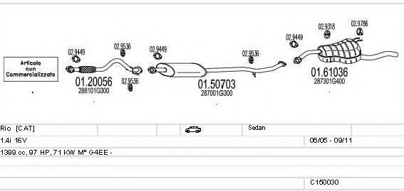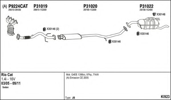 Список запчастей для KIA RIO II седан (JB) 1.4 16V Мотоцикл Глушитель в сборе