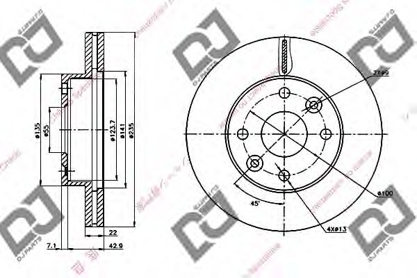 | | Тормозной диск Высота [мм] : 45,6 Диаметр [мм] : 235 Диаметр фаски 2 [мм] : 100 Диаметр центрирования [мм] : 54 Количество отверстий : 4 Минимальная толщина [мм] : 20 Поверхность : с покрытием Тип тормозного диска : с внутренней вентиляцией Толщина тормозного диска (мм) : 22 Показать больше свойств | |