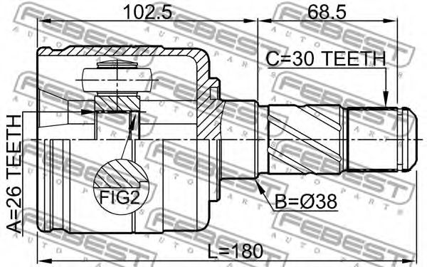 Внешнее зацепление со стороны дифференциала : 30Внутреннее зубчатое соединение со стороны дифференциала : 25Диаметр прокладки [мм] : 38Сторона установки : со стороны коробки передачТип соединения / сочленения : Шарнир равных угловых скоростей Показать больше свойств