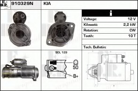 для артикула № : 220505 Мощность стартера [кВт] : 2,2 Напряжение [В] : 12