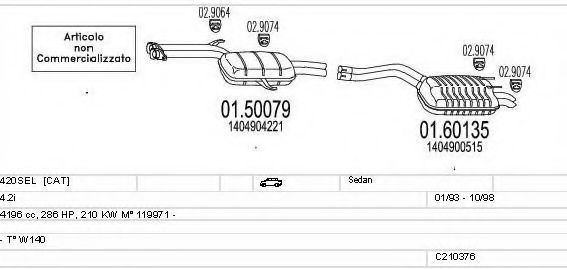Список запчастей для MERCEDES-BENZ S-CLASS (W140) 400 SE,SEL/S420 (140.042, 140.043) Мотоцикл Глушитель в сборе