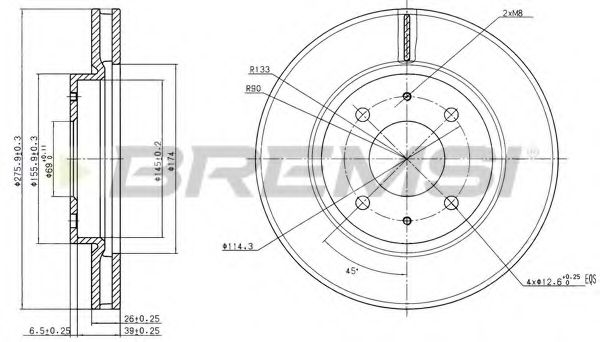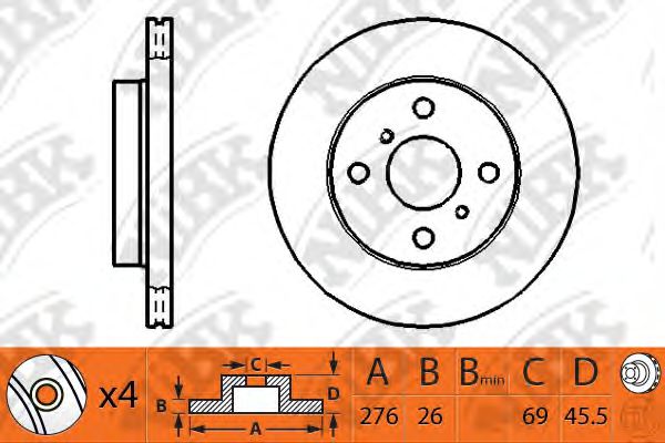 | | Тормозной диск Высота [мм] : 45,5 Диаметр [мм] : 276 Диаметр фаски 2 [мм] : 114,3 Диаметр центрирования [мм] : 69 Количество отверстий : 4 Минимальная толщина [мм] : 24,4 Размер резьбы : 12,6 Сторона установки : Передний мост Тип тормозного диска : вентилируемый Толщина тормозного диска (мм) : 26 Показать больше свойств | |