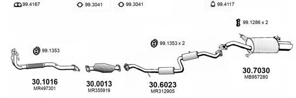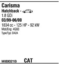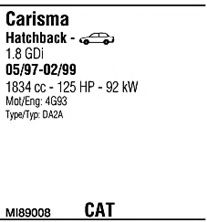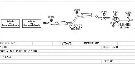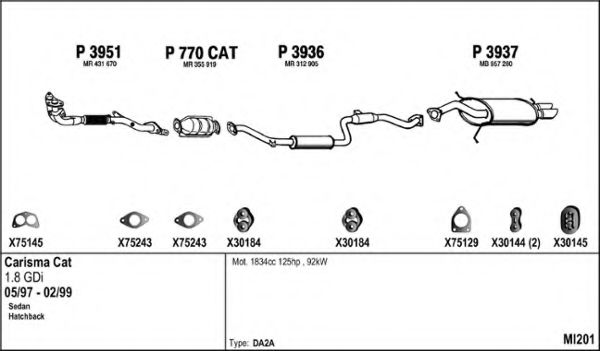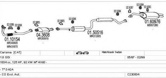 Список запчастей для MITSUBISHI CARISMA (DA_) 1.8 16V GDI (DA2A) Система выпуска Глушитель в сборе