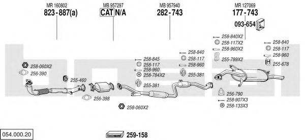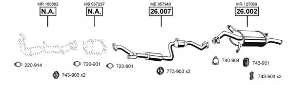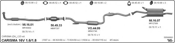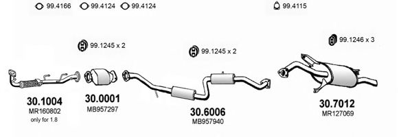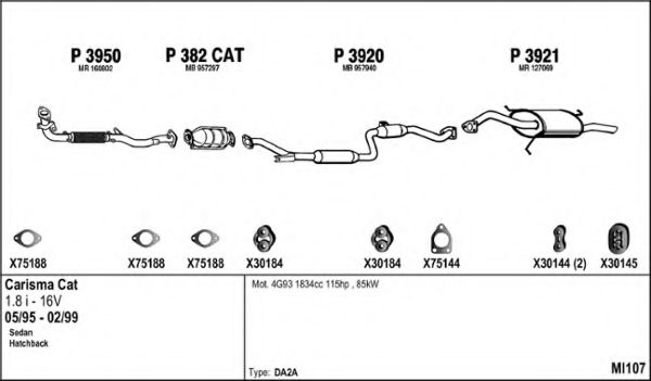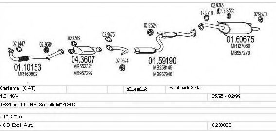 Список запчастей для MITSUBISHI CARISMA (DA_) 1.8 (DA2A) Система выпуска Глушитель в сборе