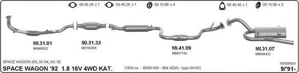 Список запчастей для MITSUBISHI CHARIOT (N3_W, N4_W) 1.8 4WD (N41W) Система выпуска Глушитель в сборе