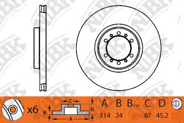 Диаметр центрирования [мм] : 87 для тормозного диска диаметром [мм] : 313 Количество крепежных отверстий : 6 Показать больше свойств
