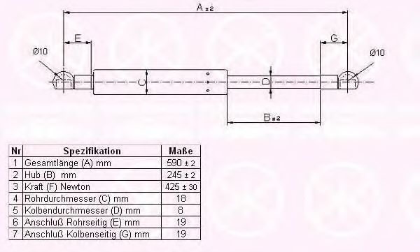 Высота подъема [мм] : 246 Выталкивающая сила [N] : 425 Длина [мм] : 590