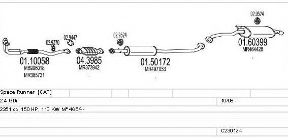Список запчастей для MITSUBISHI SPACE RUNNER (N6_W) 2.4 GDI Система выпуска Глушитель в сборе