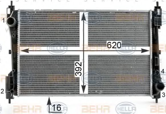 Радиатор, охлаждение двигателя BEHR HELLA SERVICE 8MK 376 900-121