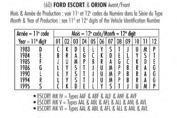 | FORD | ESCORT Mk III универсал (AWA) 1.1 | GLB | 40 Кв - 54 Лс | 80 - 83 | бензин |