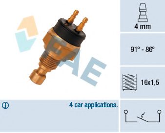 | | Термовыключатель, вентилятор радиатора Температура закрытия [°C] : 86 Температура открытия [°C] : 91 | |