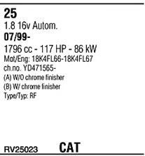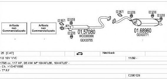 Список запчастей для ROVER 25 (RF) 1.8 16V Система выпуска Глушитель в сборе