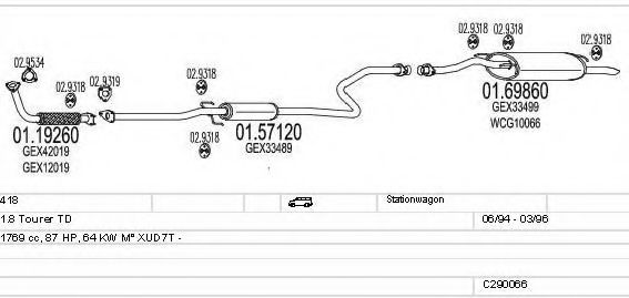 Список запчастей для ROVER 400 Tourer (XW) 1.8 TD Система выпуска Глушитель в сборе