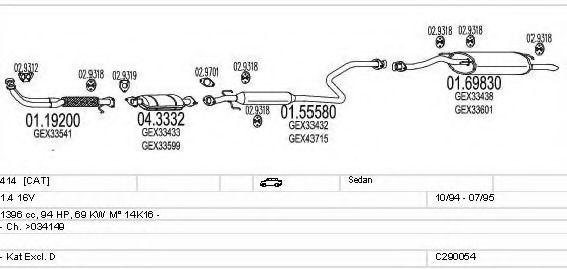 Список запчастей для ROVER 400 (XW) 414 Система выпуска Глушитель в сборе