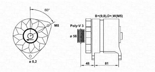 Запросить цену Генератор для артикула № : 210082 Напряжение [В] : 14 ток зарядки от генератора (А) : 55