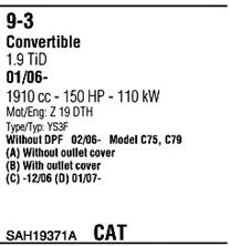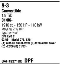 Список запчастей для SAAB 9-3 кабрио (YS3F) 1.9 TiD Мотоцикл Глушитель в сборе