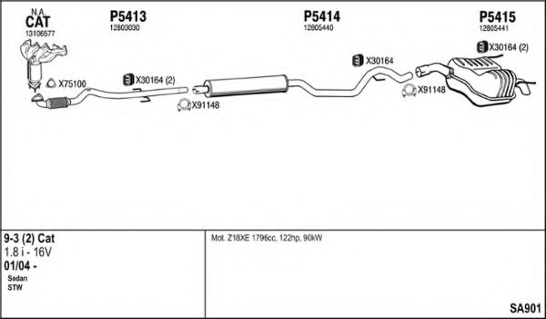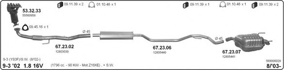 Список запчастей для SAAB 9-3 универсал (YS3F) 1.8 i Мотоцикл Глушитель в сборе